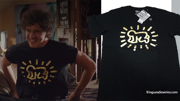 Elliott (Antonio Marziale) s’est fait remarquer dans Alex Strangelove avec son t-shirt dit « Radiant baby », l’œuvre de célèbre d’Andy Warhol, repris sur une collection Uniqlo. Le t-shirt n’est plus disponible, mais il existe encore en d’autres couleurs ici.