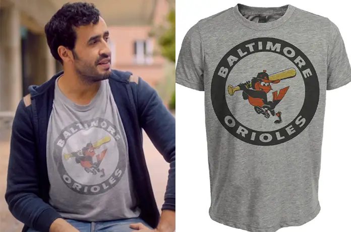 Dans Serge le mytho, sur Disney +, Serge (Jonathan Cohen) réinvente sa vie dans ce t-shirt « Baltimore Orioles ».