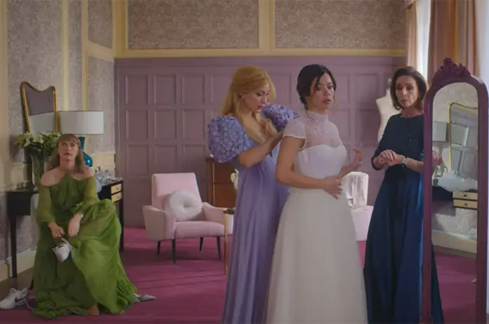La réalisation de Chloe Wallace et les costumes choisis ou créés par la cheffe costumière Laura Cortés font penser à une scène de Cendrillon.
