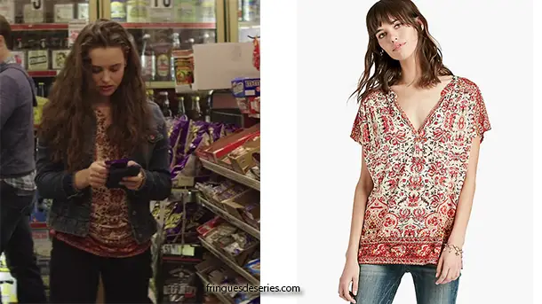 Dans l’épisode 3 de 13 reasons why, Hannah Baker (Katherine Langford) va s’acheter du chocolat aux noisettes avec un top imprimé Lucky Brand, disponible ici.