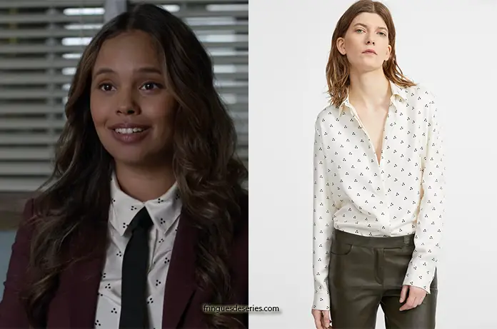 Pour son entretien dans 13 Reasons Why, Jessica Davis (Alisha Boe) avait mis une chemise blanche avec des séries de pois regroupés par 3. On la trouve ici.