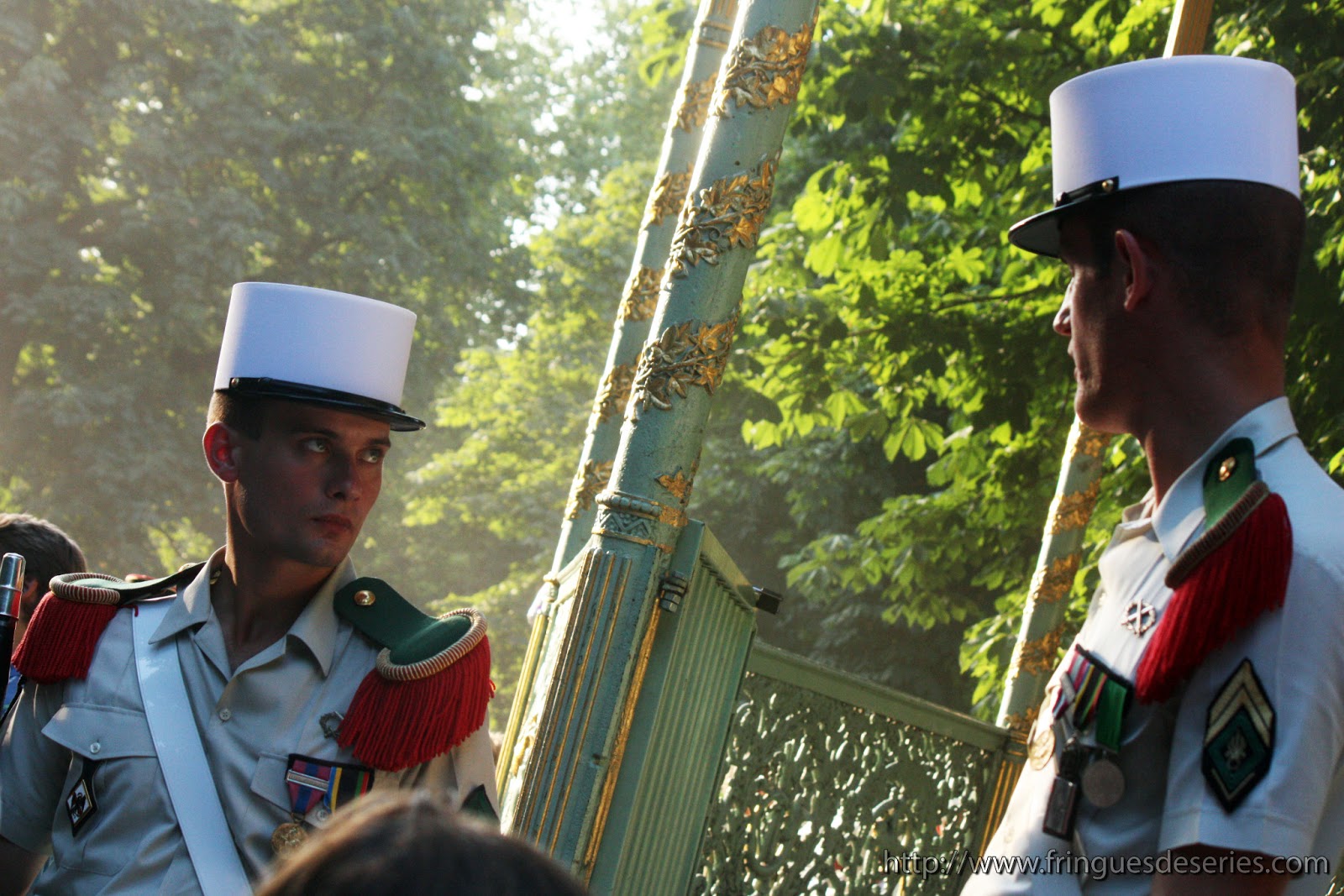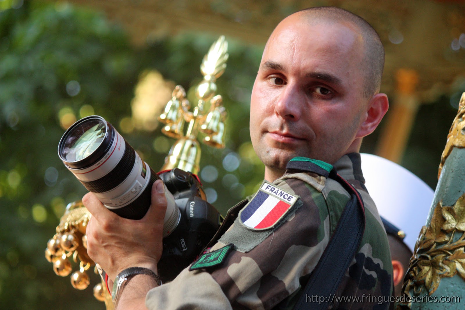 Un peu nerveux, le lieutenant-colonel Emile Lardeux attend le signe discret qu’il peut lancer la musique…la suite royale doit être en vue pour lancer le départ…