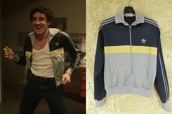 Dans 3615 Monique épisode 6, Toni (Paul Scarfoglio) nous montre son incroyable déhanché et surtout sa jolie veste tricolore.Ce modèle tricolore a été lancé au début des années 80 par Adidas. On en trouve encore sur eBay, comme ici