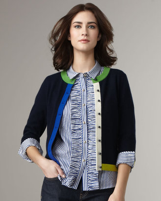 Jessica Alba, qu’on ne présente plus, aime toujours le color blocking. On l’a vue il y a quelques jours se promener en famille, avec ce joli cardigan en cachemire Kate Spade, qu’elle avait accessoirisé avec une écharpe jaune et une pochette rose corail.