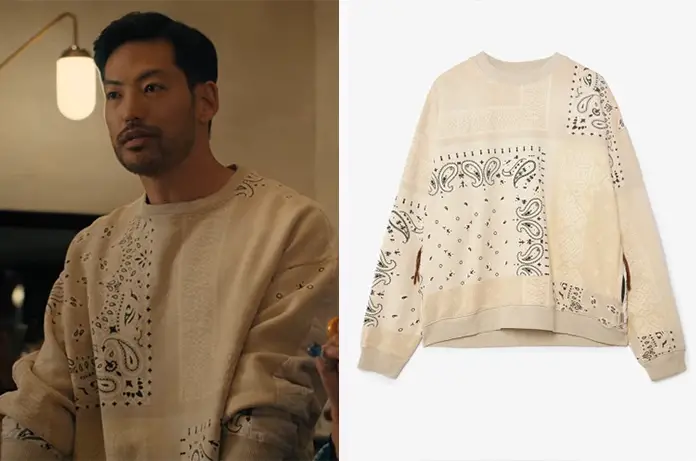George Nakai (Joseph Lee) porte ce pull imprimé bandana dans le premier épisode d‘Acharnés sur Netflix.