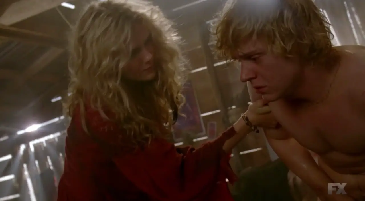 La troisième saison d’American Horror story a commencé depuis maintenant 6 semaines. Intitulée Coven, elle nous plonge dans le monde des sorcières de Salem. Certains acteurs sont des fidèles, Jessica Lange et Evan Peters, par exemple. Et ce dernier, s’est, une fois de plus, montré dans le plus simple appareil dans l’épisode 6, The Axeman Cometh, diffusé mercredi. L’acteur s’était déjà prêté à cet exercice il y a juste un an et avouait ne pas aimer ça.