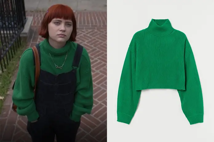Scarlett (Sierra McCormick) débarque dans sa nouvelle maison dans le 1er épisode de American Horror stories, une nouvelle série sur Disney + (Star). Elle porte un col roulé vert que l’on trouvait ici