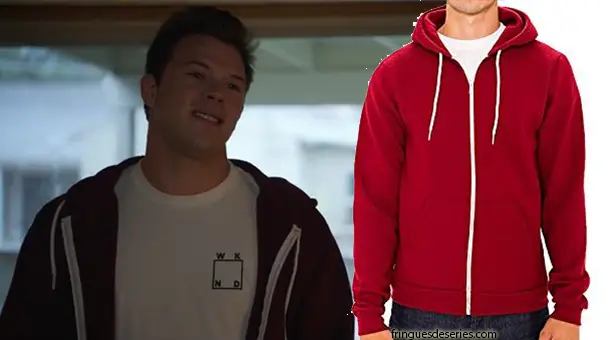 Dylan Maxwell (Jimmy Tatro) portait au-dessus de son t-shirt WKND Skateboards un sweat à capuche American Apparel. dans l’épisode 3 d’American Vandal.