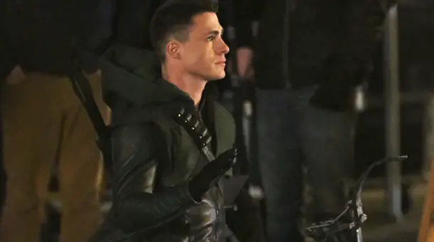 Exclusive… 51650391 Actors Colton Haynes and Paul Blackthorne filming scenes on the set of ‘Arrow’ in Vancouver, Canada on February 10, 2015. Colton Haynes was wearing the Arrow costume that Stephen Amell usually wears. Is Colton the new Arrow? Has Stephen been replaced on the show? FameFlynet, Inc – Beverly Hills, CA, USA – +1 (818) 307-4813