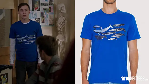 Sam (Keir Gilchrist) est vraiment content de son t-shirt avec 8 baleines. Il le porte fièrement dans l’épisode 3 d’Atypical (Netflix).