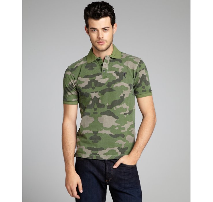 camo green tipped collar cotton pique ‘Joot’ short sleeve polo