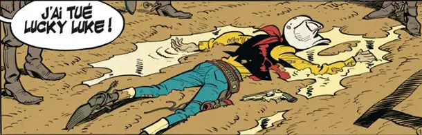 La BD est un hommage à Lucky Luke, par la force des choses, ou à son créateur (une tombe dans le cimetière porte l’inscription Morris from Bevere) mais aussi au western du grand écran. Rien que le titre fait irrémédiablement penser au classique de John Ford : l’homme qui tua Liberty Valance, certains cadrages, notamment le duel, se sont déjà vus dans les westerns spaghetti et tous les stéréotypes du genre défilent au fil des pages : la ville isolée, l’attaque de la diligence, la tribu indienne, le duel, la bagarre de saloon, la prime que l’on offre au héros…