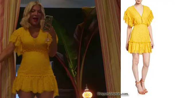 Fringues de séries BH90210 : Tori’s yellow dress in episode 1 Par FDS - 9 août 2019 0 1585 FacebookTwitterPinterest Tori (Tori Spelling) se rend à la convention dans une robe jaune pleine de dentelles, dans l’épisode pilote de BH90210. On la trouvait ici De la même marque, on trouve ici une version plus pâle. J’aime ça :J’aime chargement…