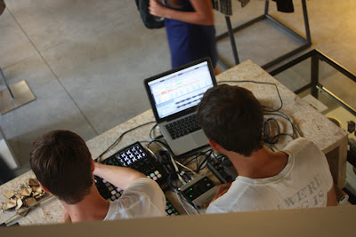 Marie – Oui, depuis février, et cela nous convient très bien… A Paris, Aymeric avait des magasins de pulls en cachemire, moi, j’étais chargée de projets dans la publicité… Et nous voilà donc à Bruxelles, à travailler en binôme… On décide tout à deux, après Aymeric s’occupe plus de la mode hommes, moi des femmes…mais sinon, rien n’est décidé sans l’autre…