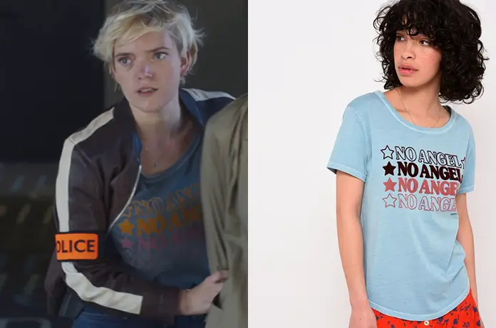 Léa Saskevitch (Coralie Russier) finit l’enquête dans César Wagner épisode 2 (De sang et eaux) dans ce t-shirt No Angel. On le trouvait ici, mais il est sold out