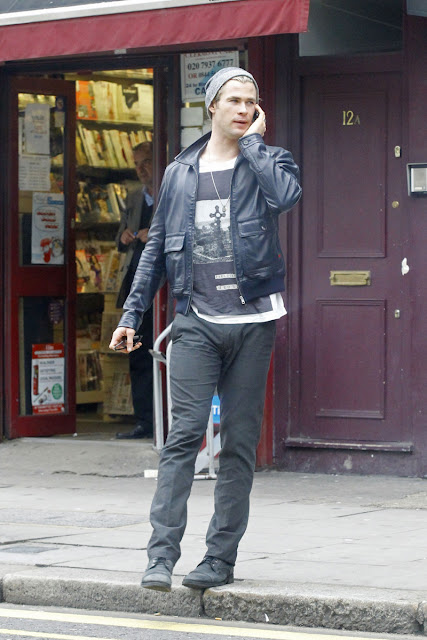 L’acteur australien Chris Hemsworth était à Londres aujourd’hui avec ses parents. On l’a vu à la sortie d’un pub avec ce joli t-shirt All saints. Chris sera bientôt sur les écrans dans Blanche-Neige et le chasseur (Snow White and the Huntsman) de Rupert Sanders. Vous aurez compris que c’est lui le chasseur.Chris Hemsworth in London