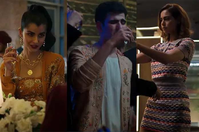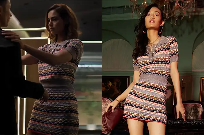 Koel (Naina Bhan) s’habille également avec des marques indiennes, même si ce modèle ne dénoterait pas dans une boutique italienne, par exemple, telle Missoni. Il s’agit d’un modèle de la marque Mesha. La très jeune créatrice Amisha Bajaj trouve clairement son inspiration dans les lignes vintage françaises, anglaises, italiennes.