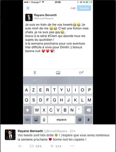 Plus de 6 millions de téléspectateurs pour le nouvel épisode de Clem, diffusé hier soir sur TF1, plaçant la chaine au top des audiences à cette heure-là. Moment fort de l’épisode où l’on découvre que Dimitri (Rayane Bensetti) a une drôle de façon de réviser puisqu’il s’allonge torse nu sur son camarade Lucas (Victor Meutelet). Cette scène a ému de diverses façons les spectateurs vu les nombreux commentaires sur Twitter.