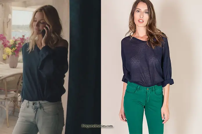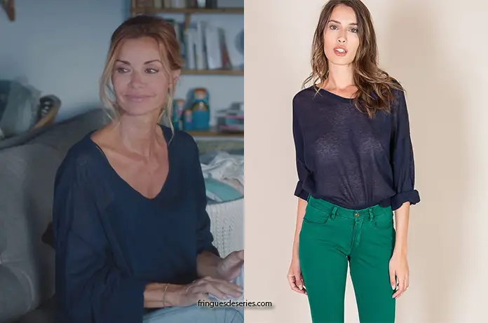 Petit cross-over de DNA avec ITC. Dans l’épisode 3 d’Ici tout commence, on voit effectivement Chloé (Ingrid Chauvin) répondre au coup de fil de Maxime, depuis sa maison sétoise. Elle porte son joli pull bleu de la collection été de Karma Koma.