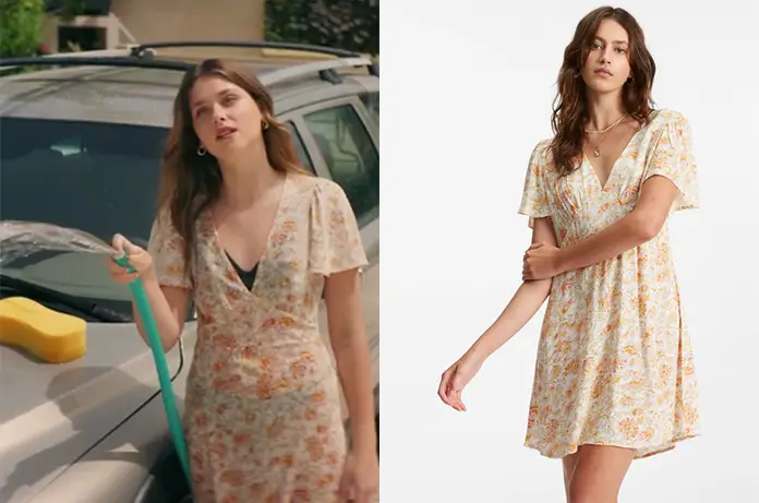 Une robe blanche avec un motif floral orangé : on la trouve ici