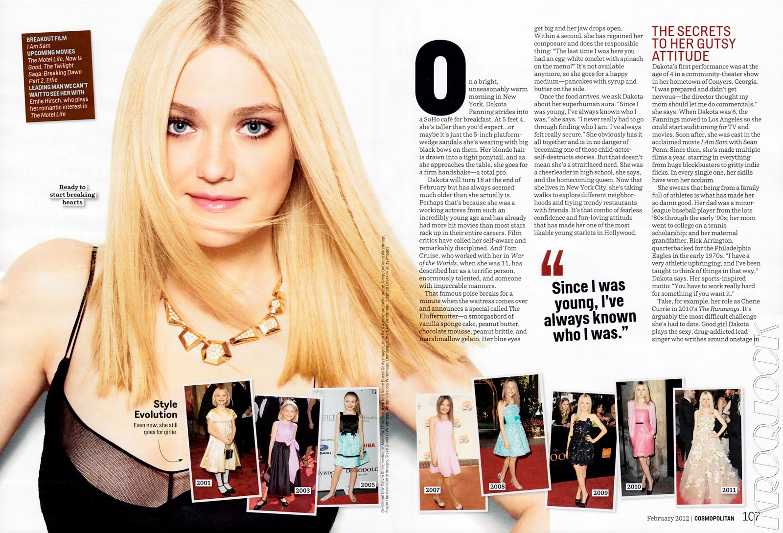 Il est fort à parier qu’on entendra beaucoup parler des sœurs Fanning en février. Dakota qui aura 18 ans le 23 février fait la une du Cosmopolitan de ce mois-là. On devrait retrouver la jeunette en 2012 en Jane Volturi dans la suite de la série Twilight.