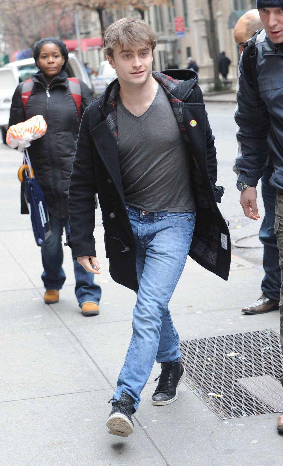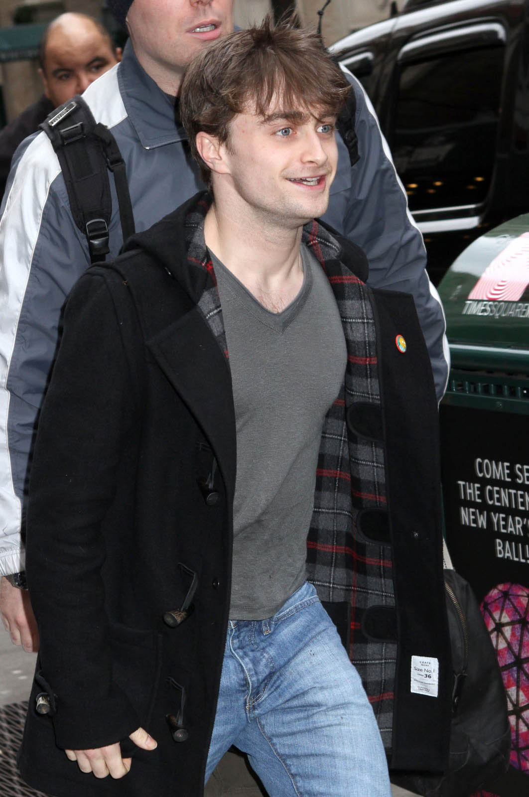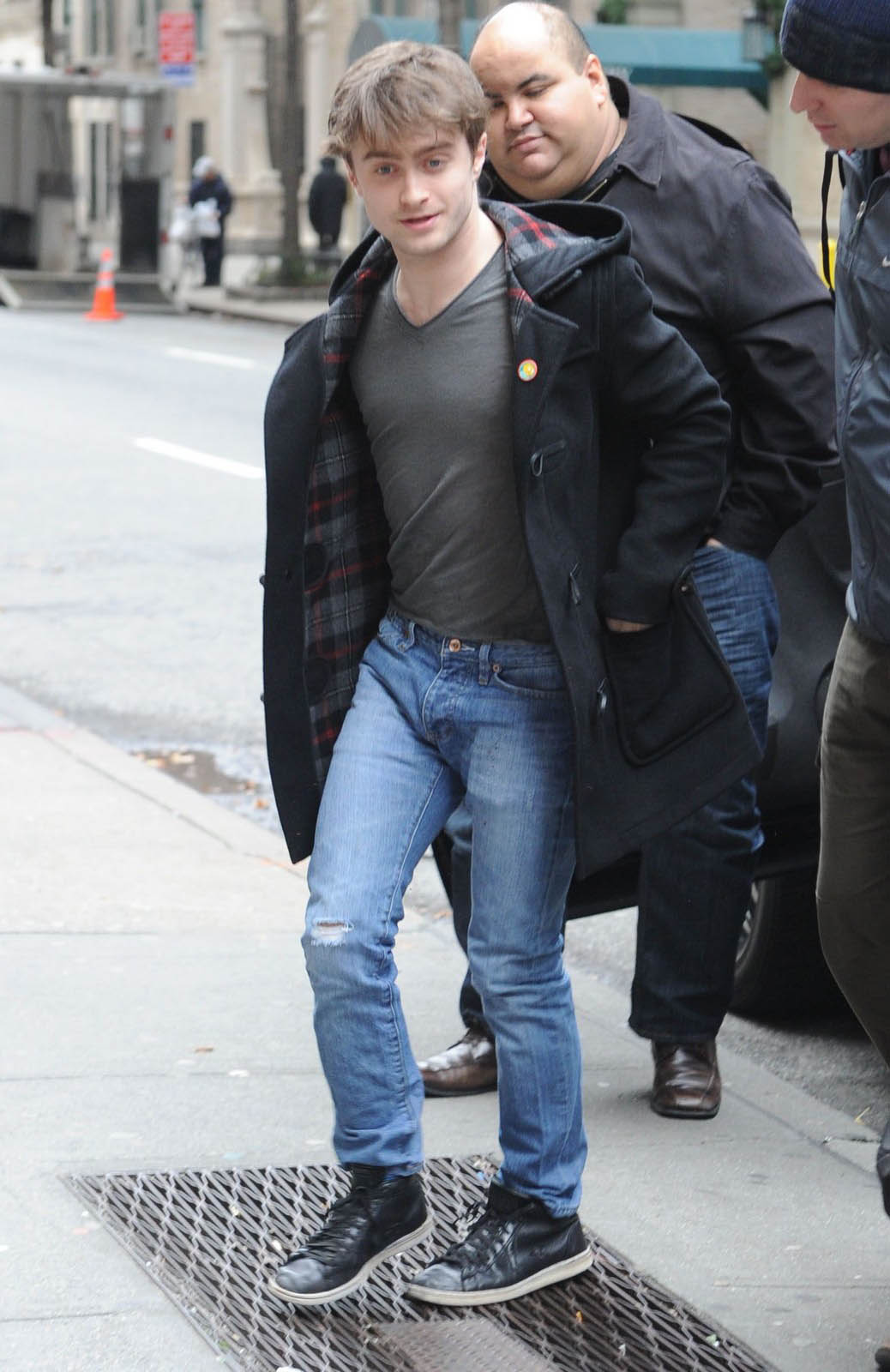 Celui qui a immortalisé Harry Potter porte ici un modèle de la marque Gloverall, qui est ce qu’il y a de plus authentique en matière de duffle-coat.