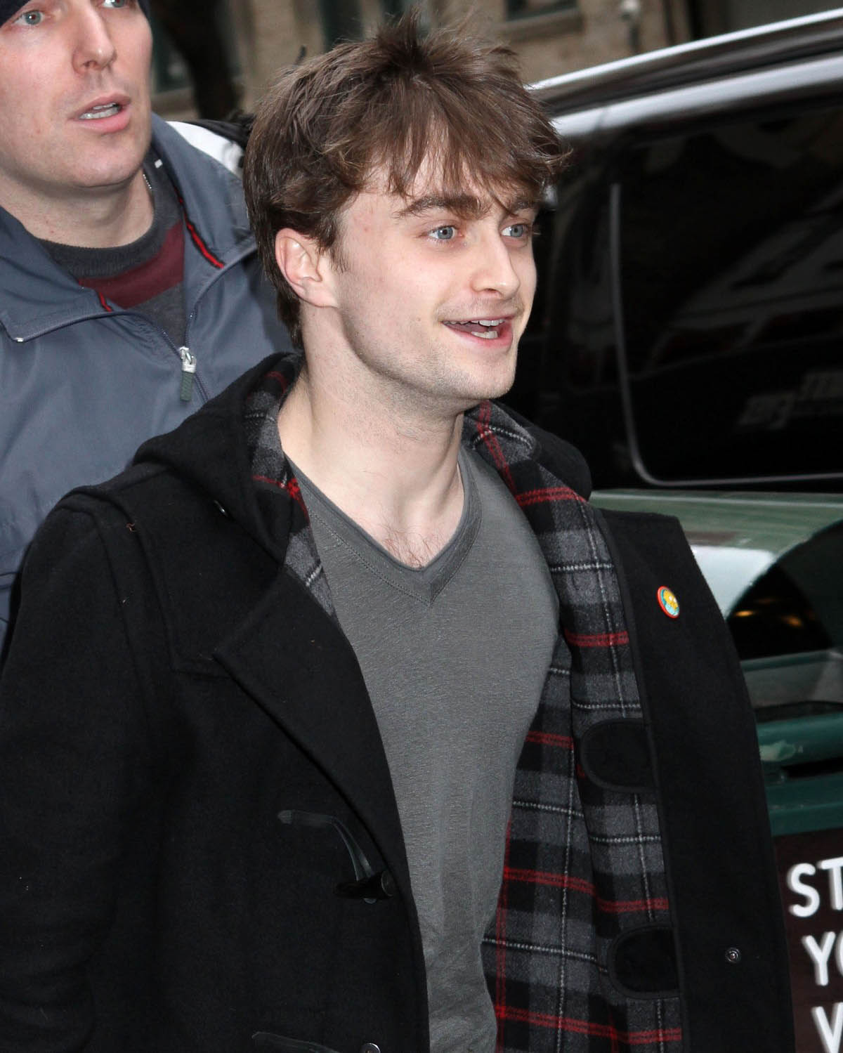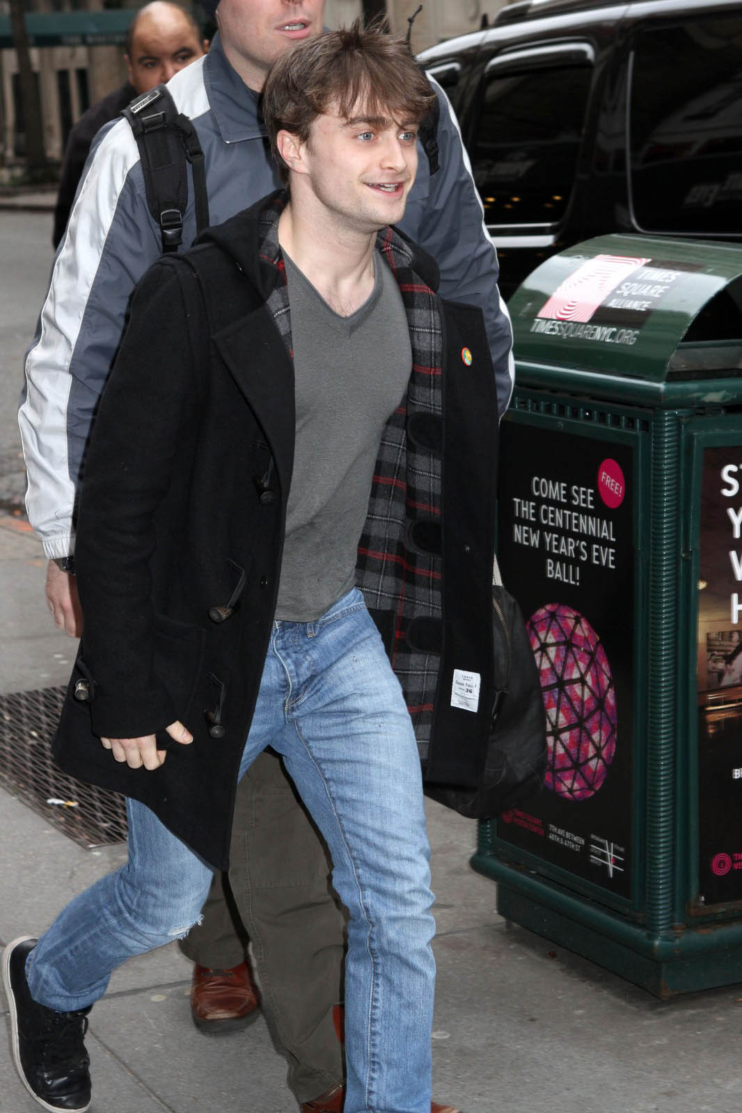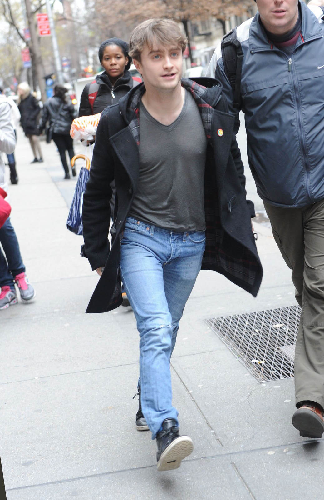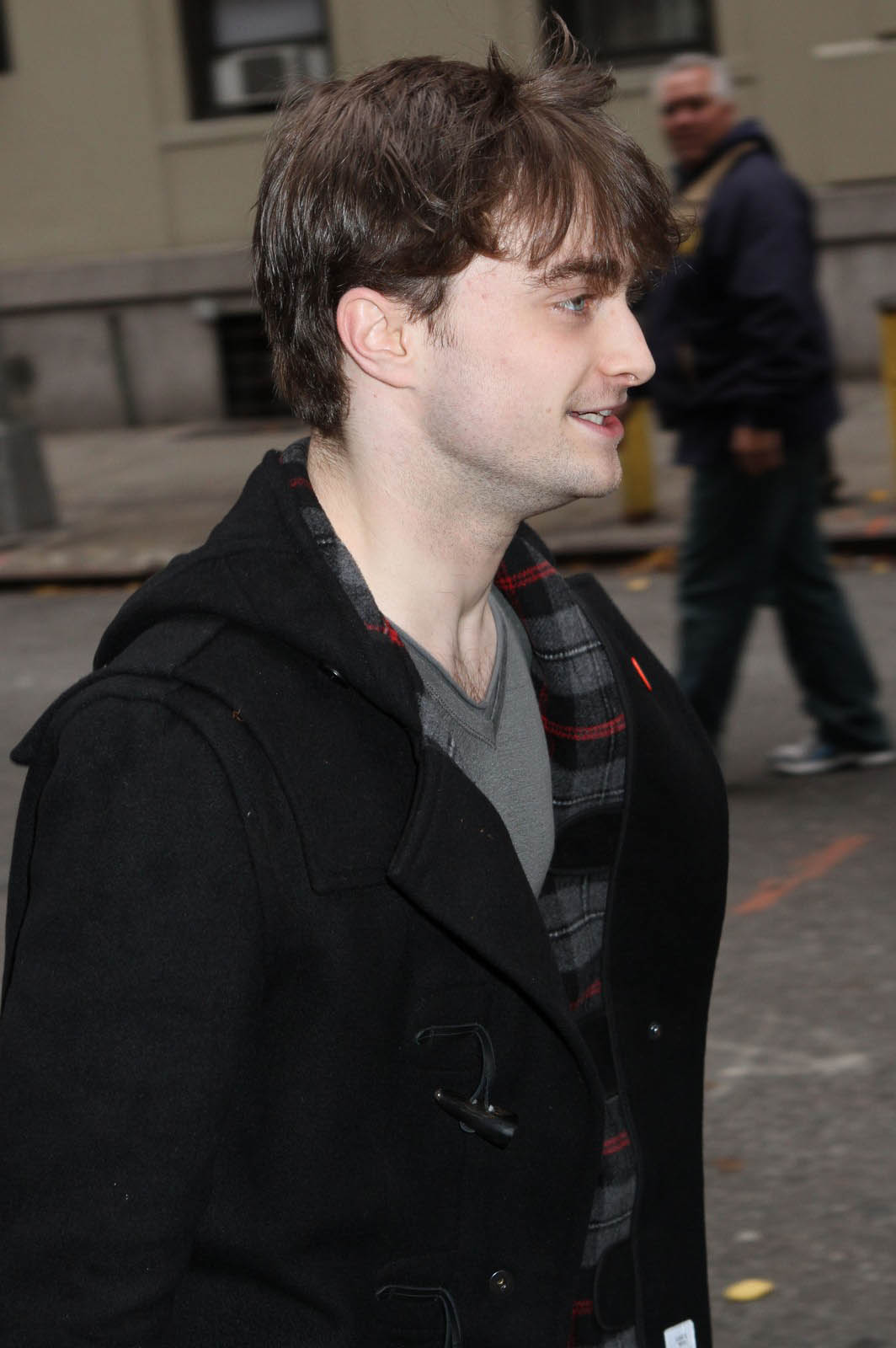 Celui qui a immortalisé Harry Potter porte ici un modèle de la marque Gloverall, qui est ce qu’il y a de plus authentique en matière de duffle-coat.