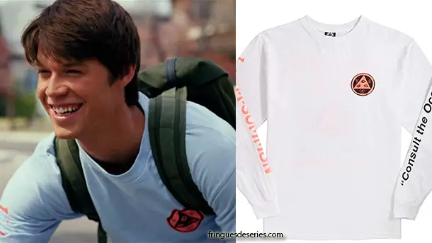 Josh (Colin Ford) fait du skate avec un t-shirt à longues manches dans Daybreak 1×01. On le trouve ici (avec le logo couleur corail)