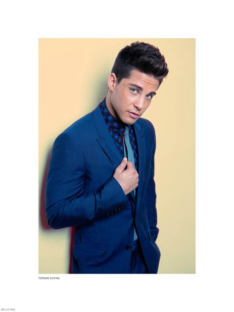 Qu’il est classe, Dean Geyer, dans le Bello mag n° 40. Le styliste Monty Jackson (@MrMontyJackson) lui a dégoté un costume Topman bleu et une chemise de la même marque.