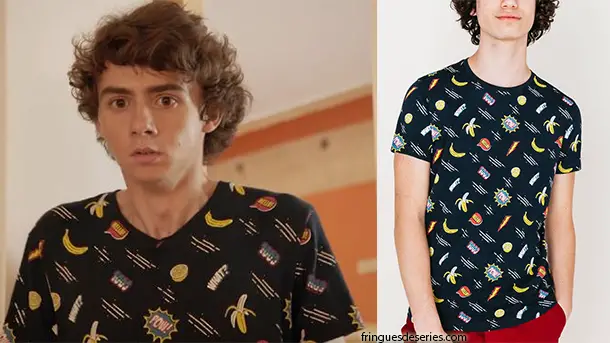 L’épisode 50 de Demain nous appartient est particulièrement douloureux pour Lucas (Valentin du Peuty) : l’ado découvre le cadavre de sa prof de math, mme Beltram. Il porte un t-shirt ‘esprit comics’ de la marque Bizzbee