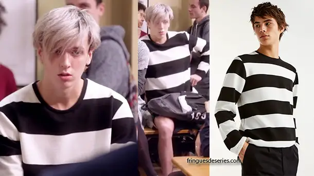 Mathias (Gulliver Benhadj) n’était pas enchanté de porter la jupe dans l’épisode 150 de Demain nous appartient. Mais il kiffait certainement son sweat rayé Pull and Bear.