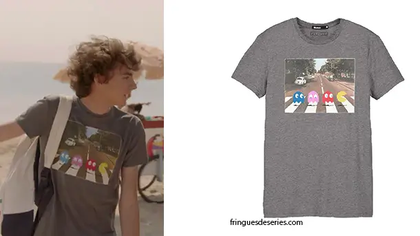 Lucas (Valentin du Peuty) est de plus en plus perturbé, mais garde des t-shirts ludiques, comme celui-ci, avec des fantômes pacman qui traversent façon Beatles Abbey Road. C’est dans l’épisode 67 de Denain nous appartient (TF1)