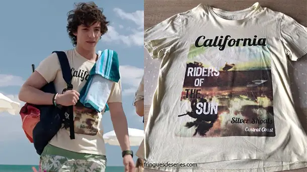 Pour séduire la belle Sofia, Gabriel (Arthur Legrand) pense-t-il marquer des points avec son t-shirt « California, riders of the sun » ? C’est ce qu’il porte dans l’épisode 497. Il s’agit d’un t-shirt Primark, qu’on trouve sur Vinted