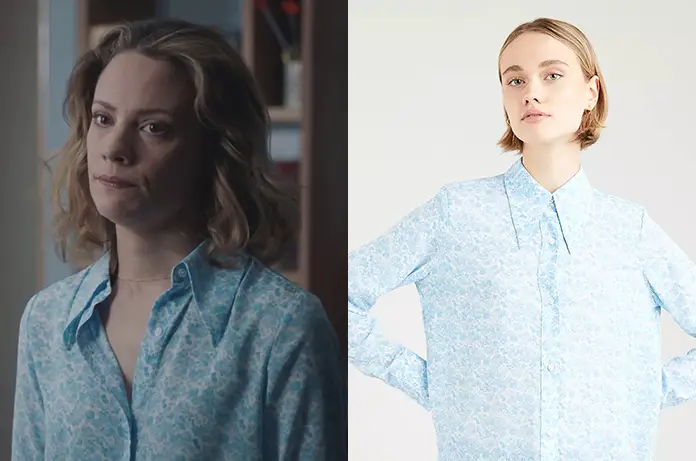 Alma (Camille de Pazzis) occupe toujours la chambre de Jordan dans Demain nous appartient 1097. Elle porte une chemise a fleurs bleues que l’on trouve ici