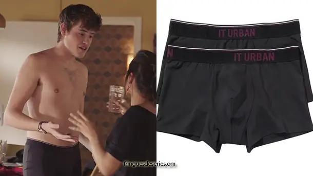 Dans Demain nous appartient 685, Jules (Xavier Widhoff) s’amuse avec Noor lorsqu’il est surpris par Samuel. Il porte un boxer noir en polyamide TEX, une marque du groupe Carrefour.