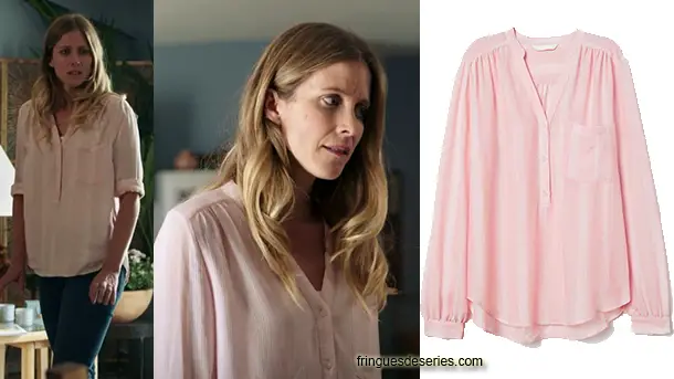 Virginie Corkas (Audrey Looten) se dispute encore avec son fils dans l’épisode 515 de Demain nous appartient. Le rose pastel de sa blouse ne parvient gère à calmer ses nerfs. On trouve cette jolie blouse ici.au prix promo de 9.99 €. (Choisissez votre pays de livraison, tout en bas de la page, au milieu – les disponibilités varient selon les pays.)