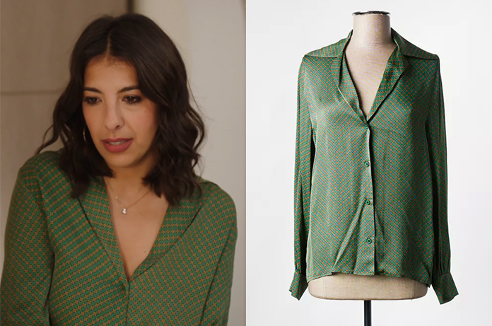 Sous le choc des retrouvailles, Soraya (Kenza Saïb Couton) reporte, dans Demain nous appartient épisode 2192, un chemisier vert déjà vu en 2024.