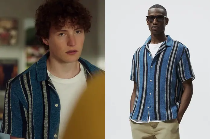 Jack (Dimitri Fouque) porte cette chemise à courtes manches dans Demain nous appartient 1207. Bleue, à rayures, on la trouve ici