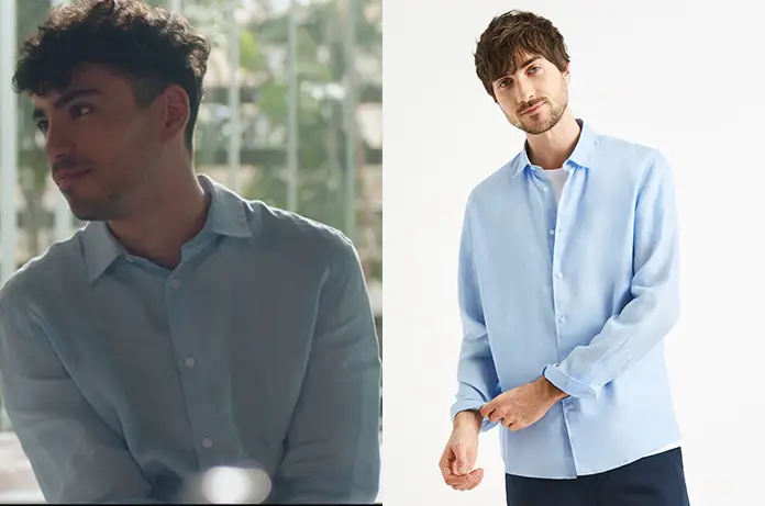 Dans Demain nous appartient 2002, Clément (Léo Moreau) continue le romantisme en choisissant une chemise bleu ciel qu’il a trouvée ici