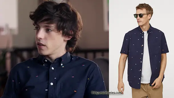 Gabriel (Arthur Legrand) discute de son nouvel emménagement dans l’épisode 502 de Demain nous appartient. Il porte une chemise à courtes manches bleu marines avec des petits drapeaux en motifs. Elle est dispo ici (Choisissez votre pays de livraison, tout en bas de la page, au milieu – les disponibilités varient selon les pays.)