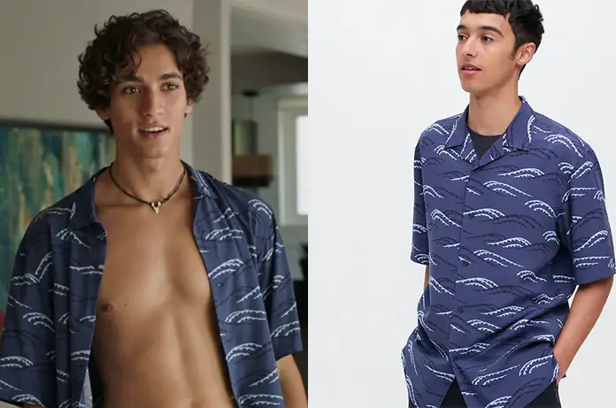 Dans Demain nous appartient 1242, Dorian (Rayane Huber) porte une chemise avec un imprimé de la maison d’édition japonaise Unsodo. Uniqlo collabore avec Unsodo pour une collection cet été. On la trouve ici