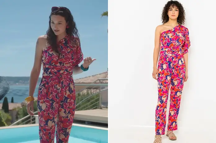 Pas si vintage que ça, la très estivale combinaison asymétrique de Manon (Louvia Bachelier) dans Demain nous appartient 980. On la trouve ici