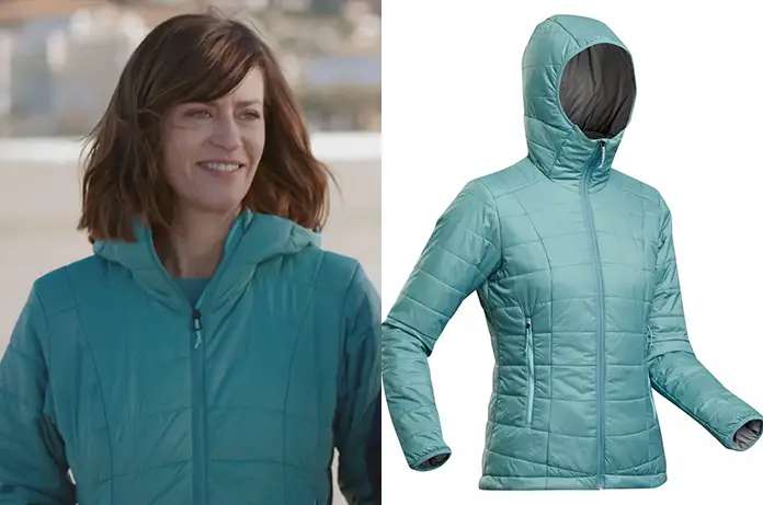 Flore Vallorta (Anne Caillon) remet Alex au sport dans Demain nous appartient 887. Elle le persuade avec une doudoune turquoise.