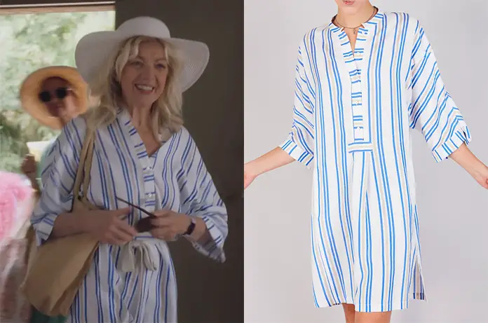 Journée de détente également pour Marianne (Luce Mouchel) dans Demain nous appartient 1237. Elle a choisi de porter une robe ample blanche, avec des rayures bleues. Comme Marianne, vous pouvez évidemment préférer la porter avec ceinture.