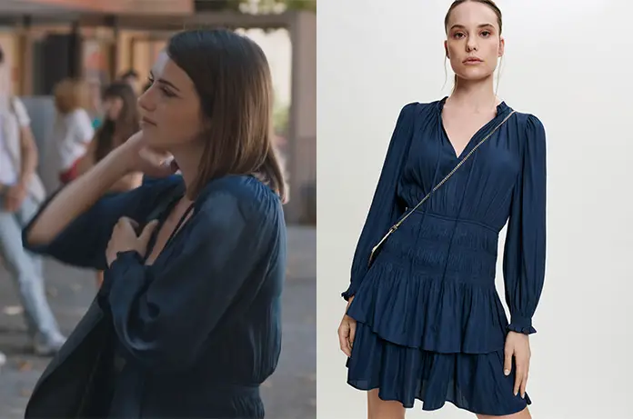 Charlie (Clémence Lassalas) porte une robe bleue pour discuter avec son beau-fils dans Demain nous appartient 1269.