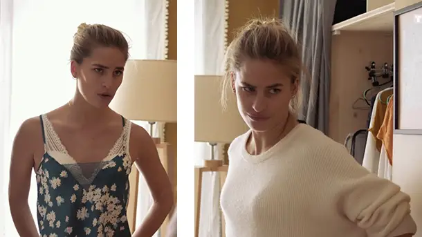 Pour la St-Valentin, Joséphine Gracia, la styliste DNA a confié à Victoire (Solène Hébert) un petit top fleuri de la marque Rougegorge et un pull blanc avec un nœud noir dans le dos de la marque Camaïeu. C’était le 400e épisode de Demain nous appartient Tf1