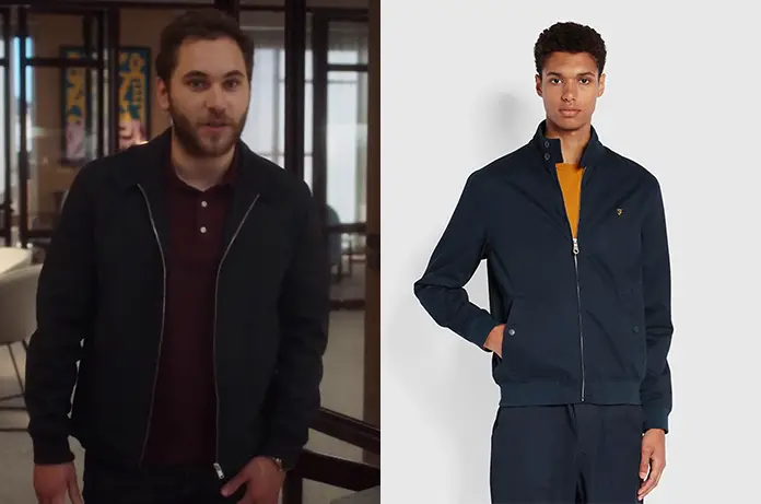 Nordine (Youcef Agal) va voir Sophie dans Demain nous appartient 1192 dans ce petit blouson de style Harrington, bleu marine. On le trouve ici