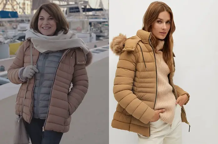 Lydie (Nicole Calfan) se balade à Sète avec un anorak doudoune à capuche avec fourrure, de couleur marron dans Demain nous appartient 4×867.