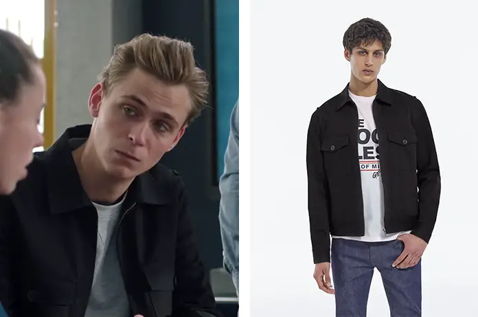 Dans Demain nous appartient 1187, Bart (Hector Langevin) se rend au poste de police avec un très beau petit blouson noir, avec des poches poitrines. On le trouve ici