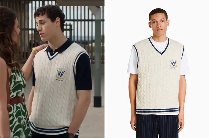 Dans Demain nous appartient 1452, Rayane (Sasha Birdy) accueille sa mère dans ce pull blanc sans manches, avec un logo brodé façon écusson.